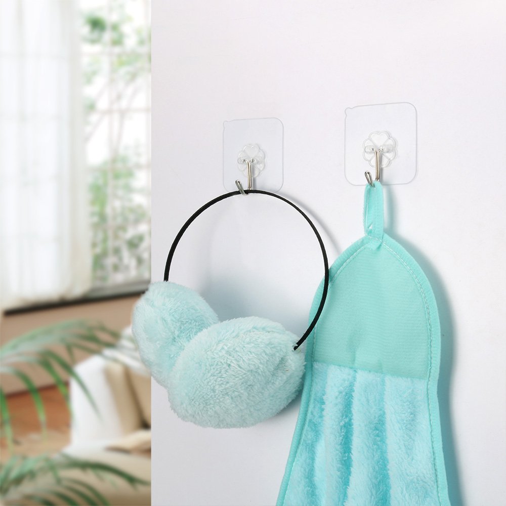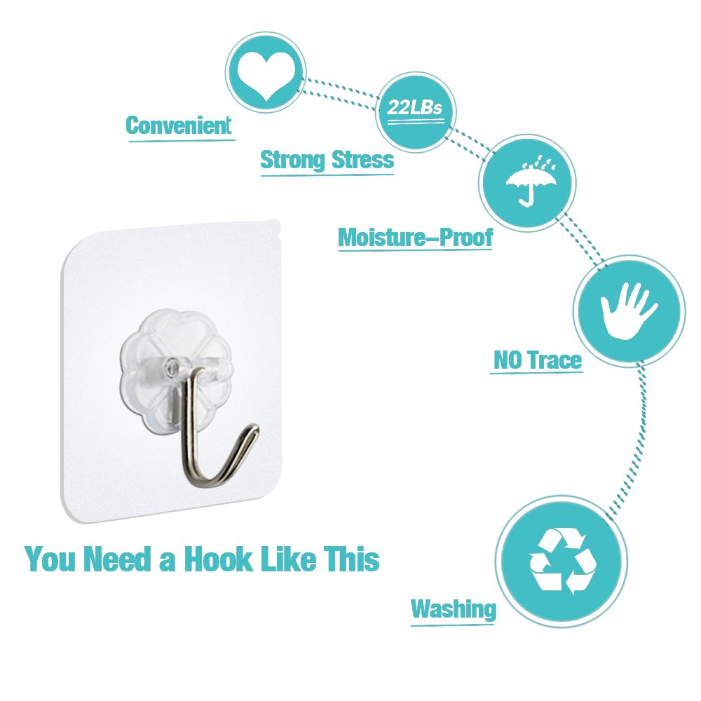 FOTYRIG Ultra strong adhesion hook Wall hook High power Clear hook Wall undamaged Hook Load bearing 10 KG Electrostatic water repellent Repeatable use No trace remains Clover design 10 pieces