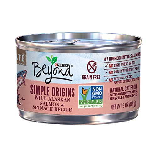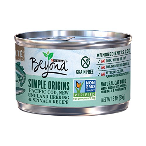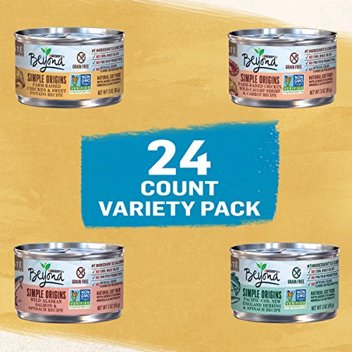 Offer your cat a variety of delicious flavors with this Purina Beyond Simple Origins Grain Free adult wet cat food variety pack. Each recipe features real farm-raised chicken, ocean whitefish or wild salmon as the #1 ingredient, and accents of wholesome vegetables round out each entree for real, recognizable ingredients you can feel good about serving to your feline friend. The pate texture gives her something she can happily sink her teeth into, while the three different recipes keep her wondering which selection you'll put in her dish next. Rest easy knowing that these entrees contain no artificial colors, flavors or preservatives, and watch as she happily nibbles up every last morsel at mealtime. This wet cat food variety pack features grain-free, non-GMO Project Verified formulas, so you can feel good about the foods you serve to your cat companion each and every day. Give her the nutrition she needs, when she needs it, by ordering Purina Beyond on Amazon.com today.Feature