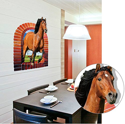 -. Title : U-Shark 3D Running Horse Self-adhesive Removable Break Through the Wall Vinyl Wall Stickers / Murals Art Decals Decorator ¡