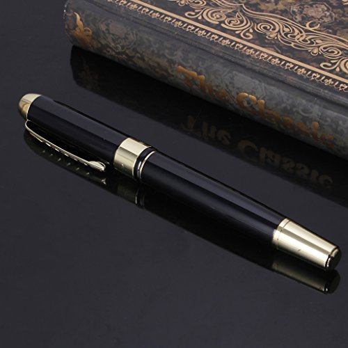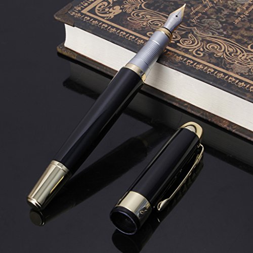 -. Feature : Length: 14cm/5.51". Patterns: Black paint/Steel style / Nip: 0.5mm . Cap: Snap on type cap . The cap: Pull-type / The converter: screw-type (use bottled ink). Ink cartridge: International standard . Converter: Removable ink converter( may be replaced with international standard size ink cartridge. Also, you may use bottled ink.) / Jinhao Pen is inspired from the long history and splendid traditional culture of China, which contributes to the fine artistic elements and design concept; and it's processed and finished by world-leading techniques. Thanks to the original design, top materials, and exquisite craftsmanship, it stands for the excellent quality, the trend in the trade, the valuable for collection, and the witness to history. Best gift for your Friends or your family! Great for collection! / Package includes 1 x Fountain pen