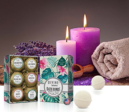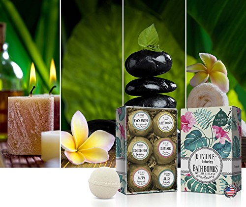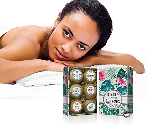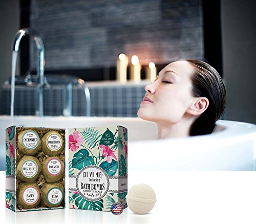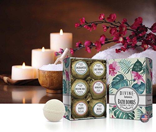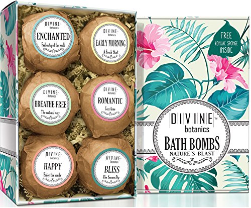 -. Feature : Perfect sanctum, any time of the day. Need an excuse to pamper yourself. Immerse in pure joy of moisturizers and aromatherapy. Our large bath bombs are proudly handmade and packaged in the US. They are made with organic and natural ingredients. Best of Organic Moisturizing oils and Shea butter. / Invigorate your senses and transform your day with specially blended and formulated essential oils that are just right for any occasion. Enchanted (Feel on top of the world), Early Morning (A fresh start), Breathe Free (The natural way), Romantic (Cozy time), Happy (Enjoy the smile), Bliss (The serene dip) / FREE KONJAC SPONGE to exfoliate skin & enhance natural glow. Excellent for sensitive & delicate skin / Unique gift set. Divine Botanics Bath Bomb is a perfect gift, whether it's for your Mom, Dad, teacher, your better half or for that "special someone". Unique gift for any occasion including Mother's Day, Father's Day, Thanksgiving, Christmas, New Year, Birthdays, Anniversary, Housewarming, Graduations etc / ALL NATURAL, NO ARTIFICIAL COLORS AND FRAGRANCES. No colored ring or stains around the bathtub, which means no cleaning needed after use. Buy more than one and save. Buy with confidence. Our commitment is for greater than 100% of your satisfaction. 100% Money back guarantee, no questions asked. We have paired a Unique gift with the Bath bomb set for our valued customers, Konjac sponge.