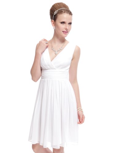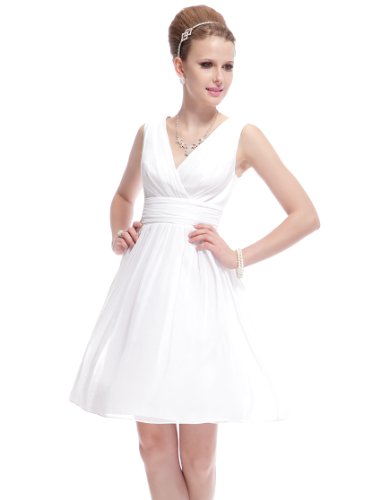 Double v-neck short party dress. Not padded. Unique ruched waist design creates an elegant silhouette. Concealed zipper up the back. Lining, no stretch. Lightweight and flowy,appropriate for many occasionsFeature