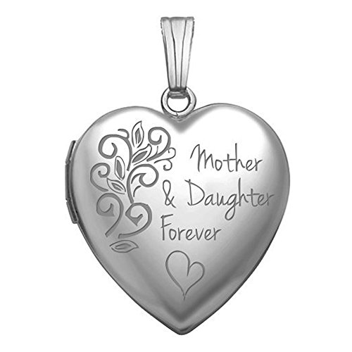 CHAIN IS NOT INCLUDED Locket holds 2 photos. 3/4 inch x 3/4 inch This Heart Locket is .925 Solid Sterling Silver and holds 2 photos. The front of this locket is engraved with Mother Daughter Forever. This beautiful locket can be engrave with a personal message on the inside and reverse side. This is the perfect gift for any occasion.Feature