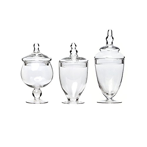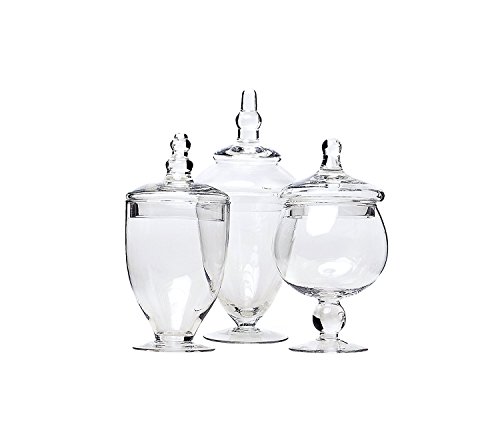 Set of 3 Clear Glass Apothecary Jars - Wedding Candy Buffet Containers