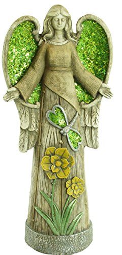 Alpine Corporation 24" Angel Statue with Green Glitter Mosaic Wings