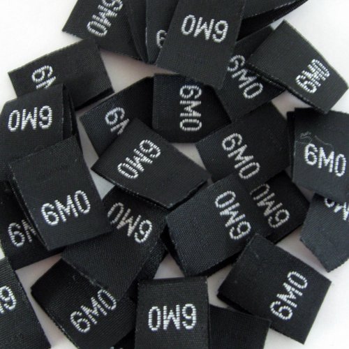 Product DescriptionNew, One package Size 6mo (Six Month) Black Woven Clothing Size Tag (Package of 50)0
