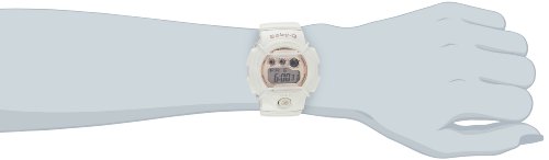 White resin casewith a white resin strap. Fixed white resin bezel. Rose gold digital dial displaying: hours, minutes, seconds, am/pm, day of the week and day of the month. Dial Type: Analog. Luminescent EL backlight with afterglow. Quartz movement. Scratch resistant mineral crystal. Solid case back. Case dimensions: 45.2 mm x 39.2 mm. Case thickness: 13.3 mm. Round case shape. Band width: 23 mm. Tang clasp. Water resistant at 100 meters / 330 feet. Additional Functions: World Time -29 time zones (48 cities), city code display, daylight saving on/off. - 4 Daily Alarms and 1 Snooze Alarm - Hourly Time Signal - 1/100 Second Stopwatch - Measuring modes: Elapsed time, split time, 1st-2nd place times - Countdown Timer - Measuring unit: 1 second - Input range: 1 minute to 24 hours (1-minute increments and 1-hour increments) - Full Auto Calendar (pre-programmed until the year 2099) Sport watch style. Casio Baby-G Marine Resort White Digital Ladies Watch BG-1005A-7Feature