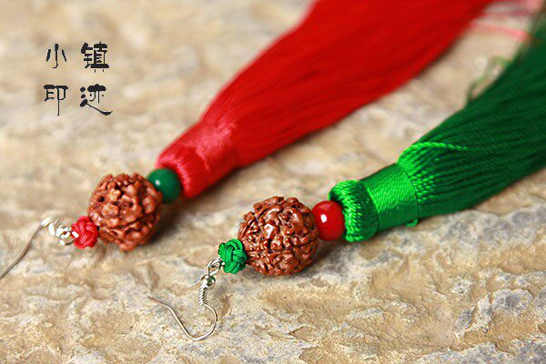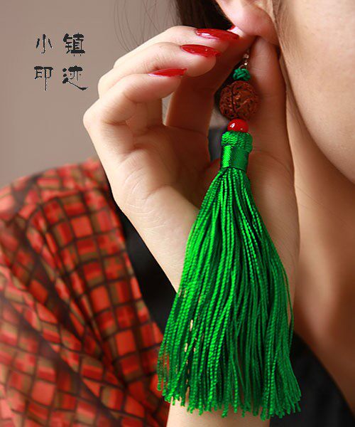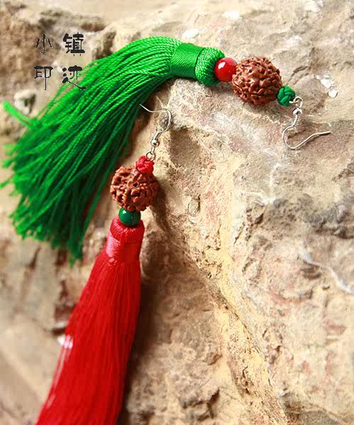 Material: natural diamond Bodhi, silk tassels, red turquoise, color knot, hypoallergenic ear hooks