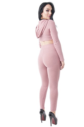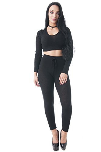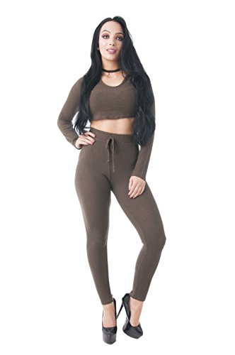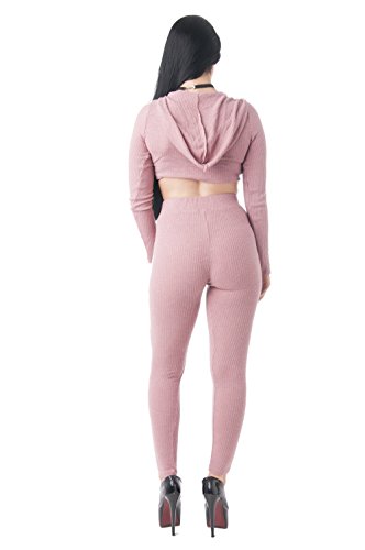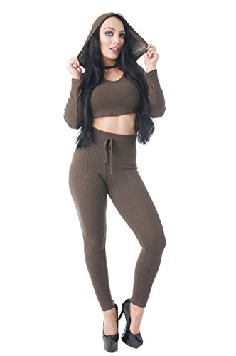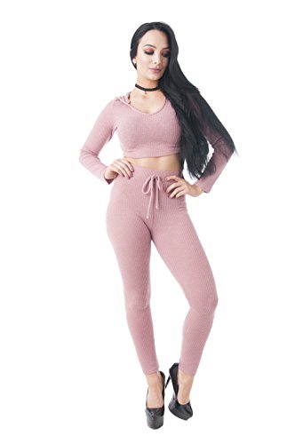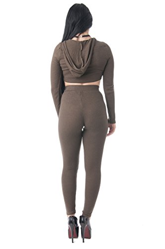Long Sleeve Knit Ribbed Hoodie Crop Top Legging Set
