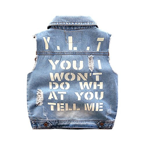 -. Binding : Apparel -. Brand : TAOJIAN -. Department : baby-girls -. Feature : Little Boys Girls Ripped Denim Sleeveless Vest,Material: Cotton Denim Blend and Soft and Comfortable to Wear / Kids Boys Girls Sleeveless Denim Vest. High quality and 100% New Brand / Hand washing & Machine Washing and Hand wash is highly recommended / Season: Summer SP.R.Ing,Autumn.Best Gift for Baby boys and girls.Soft and breathable fabric / Cute Cartoon Design, make baby more adorable, So many Cartoon Baby Boys and Girls T-shirt in our Shop -. ProductGroup : Apparel -. ProductTypeName : OUTERWEAR -. Title : Baby Boy’s Girl's Ripped Denim Letters P.R.Inted Sleeveless Vest