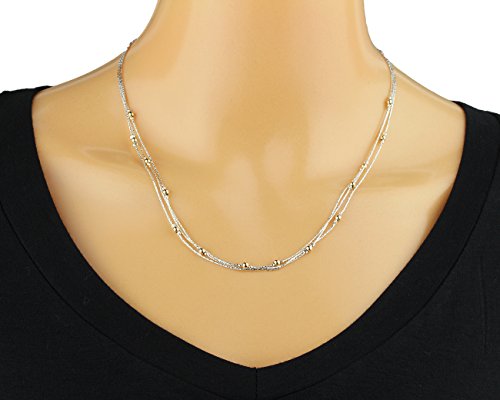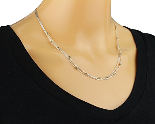Elegant two tone triple strand Sterling Silver Necklace with polished yellow Gold Filled Beads. 925 Sterling Silver 3 strand necklace with 14k Gold Filled polished beads. Artisan handmade.