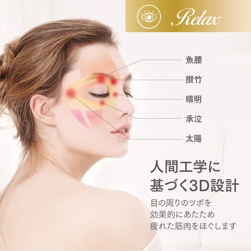 【3D設計でピッタリフィット】柔らかく手触りのよい素材を採用。独自の3D設計で優しくフィットし、目の周りのツボを効果的にあたため、緊張した筋肉をほぐします。圧迫感がないので、リラックスしながら目の疲れを癒します。また、マジックテープ式なので、自分にぴったりのサイズに調整することが可能です。