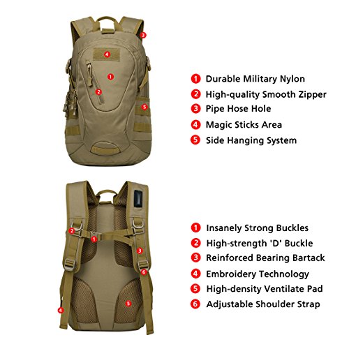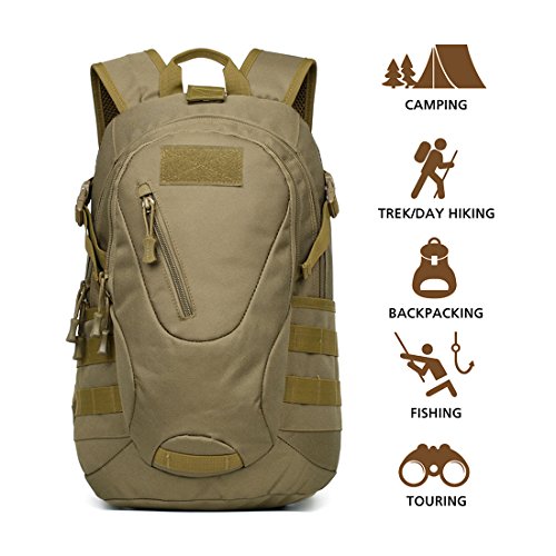 -. Title : Hisea Outdoor Hiking Backpack 15L - Durable Nylon Waterproof Daypack Tactical Military MOLLE Rucksacks with Ergonomic Design for Cycling Camping Travelling