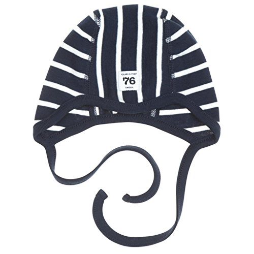 Studio : Polarn O. Pyret Publisher : Polarn O. Pyret Binding : Apparel Product Description In Scandinavia, our babies wear hats with chin ties,what we call a helmet,in the winter cold and rain. This newborn hat from our PO.P Originals Collection features Polarn O. Pyret's classic stripes in poppy or navy. Swedish helmets are great for layering under a thicker hat in the colder months or to protect sensitive skin in the nicer weather from the sun. There's no bad weather with the right clothes. A timeless look for boy or girl. 100% Organic Cotton Jersey. 0