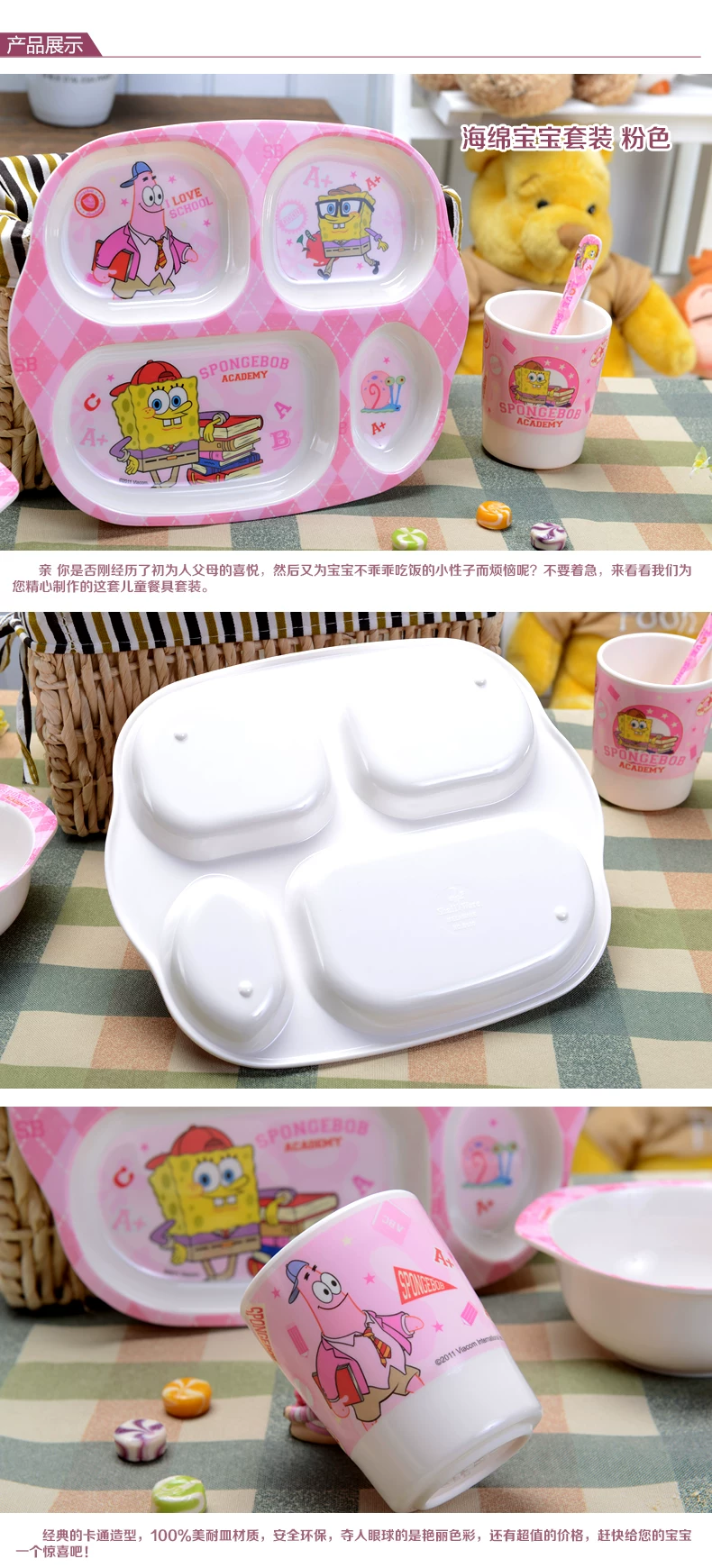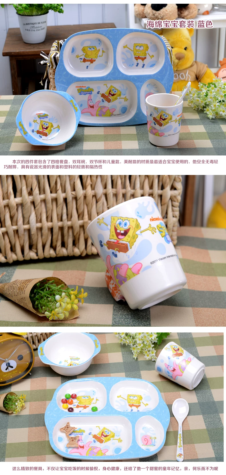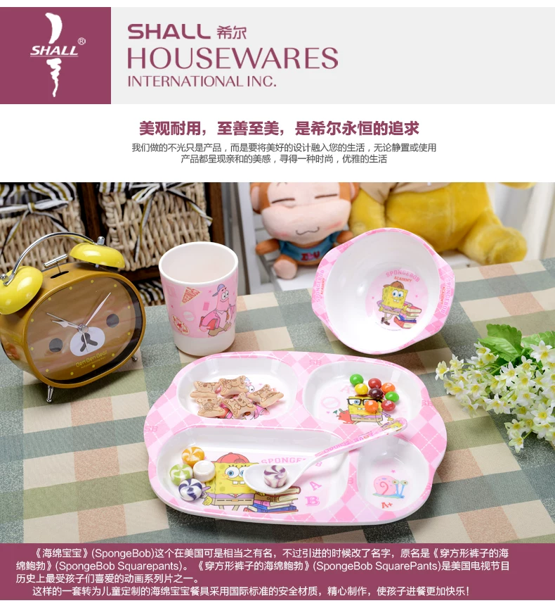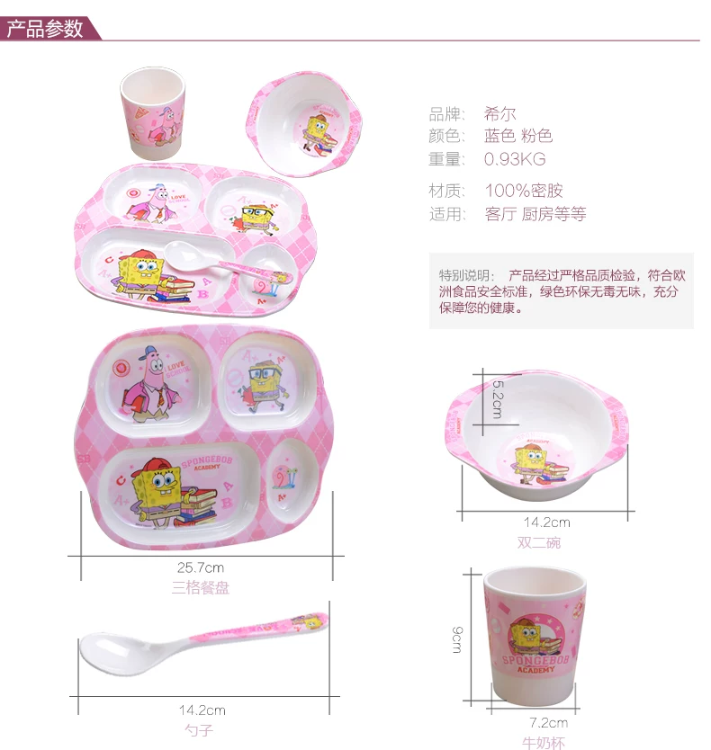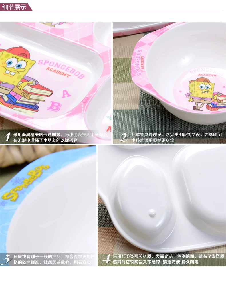 希尔 海绵宝宝 美耐皿儿童餐具便携四件套 宝宝餐具套装