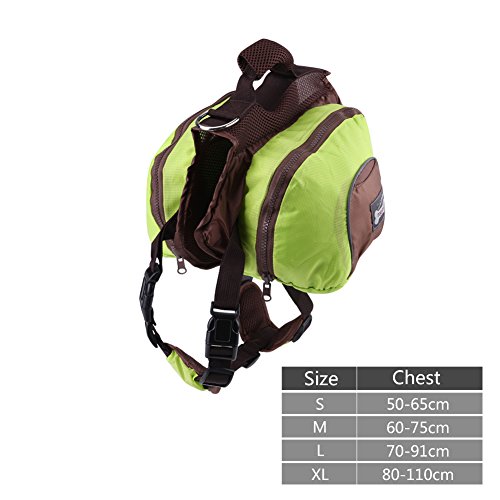 -. Feature : EASY TO STORGE It made with foldable design .We have presented an external hand bag, for you to collected if do not used, the space is very small after storage, which would not occupy too much of your living space, but also easy to carry out and use them whenever and wherever situations / Large inventory capacity: This product is equipped with two storage bag to meet the needs of your items,With 2 pockets on the side which can put enough dog travel daily necessities and food and even your small items.It can make you and pets outdoors travel becomes more well prepared / CAN BE ADJUSTED BY YOURESELF: Ergonomic saddle shape can better fit for your pet's back and provide extra comfort.Buckle design is easy to put on and take off. Neck and chest size can be adjusted to meet different needs.With D ring to attach leash, more convenient / HIGH-QUELITY MATERIALS: Mesh fabric on the bottom is breathable and healthy for your pet's skin.High quality stainless steel alloy fittings,which is more durable,wear-resistant, washable and not easy to deform.Is the best partner for your pet to go out for long periods of time / YOSOO GUARANTEE: 100% brand new. Yosoo brand aim at "to maximize the satisfaction of customers" as its operation commitment.We provide a 6 months warranty for this Pet Backpack If you have any quality problem. We aim at "the best can be better" as operation tenet. Your satisfaction is our happiness