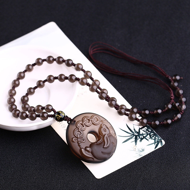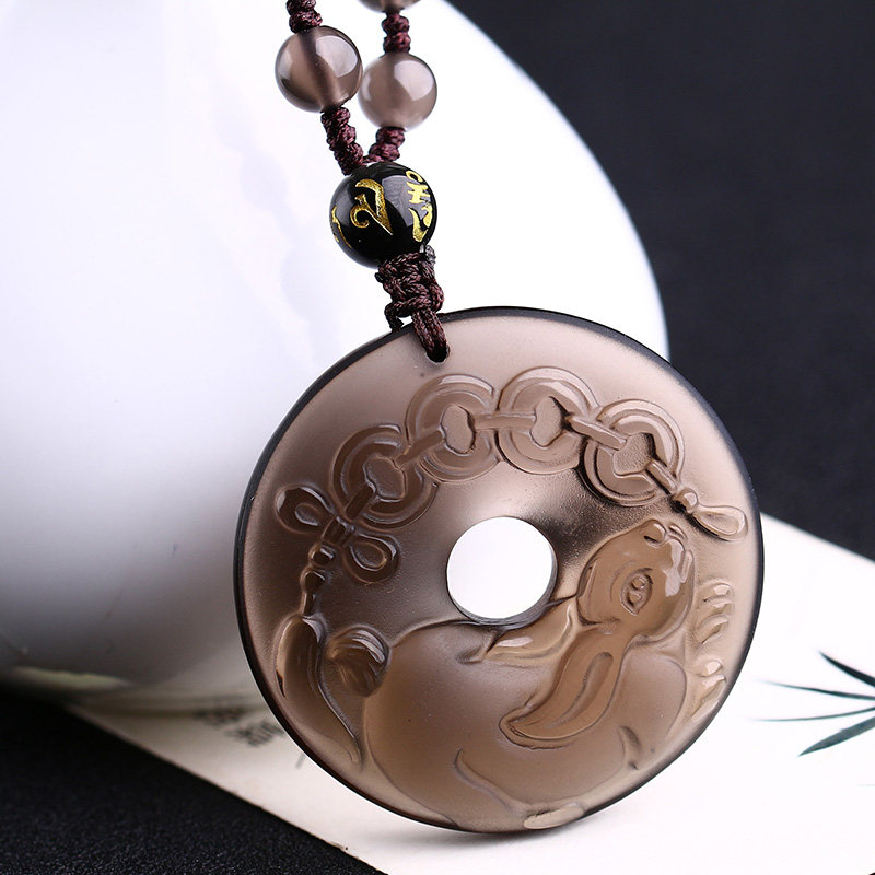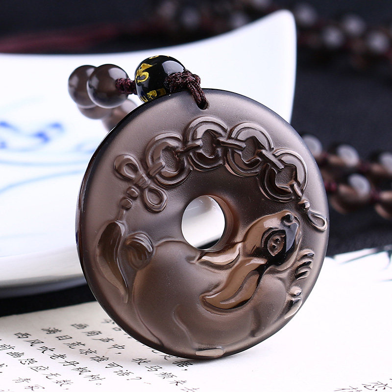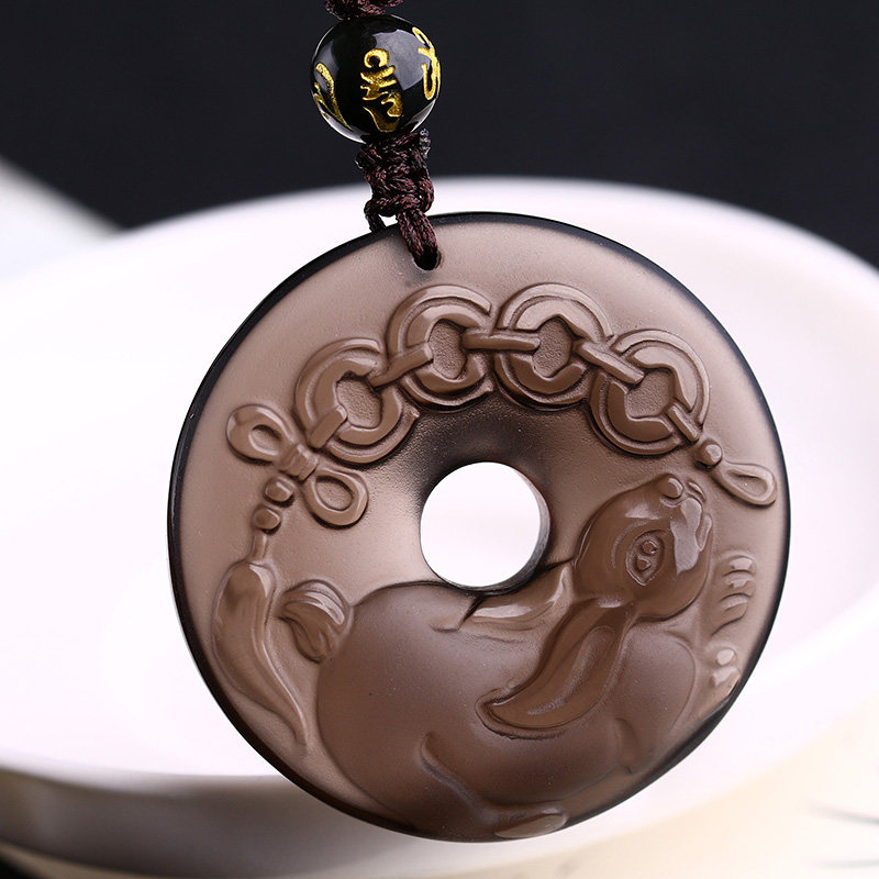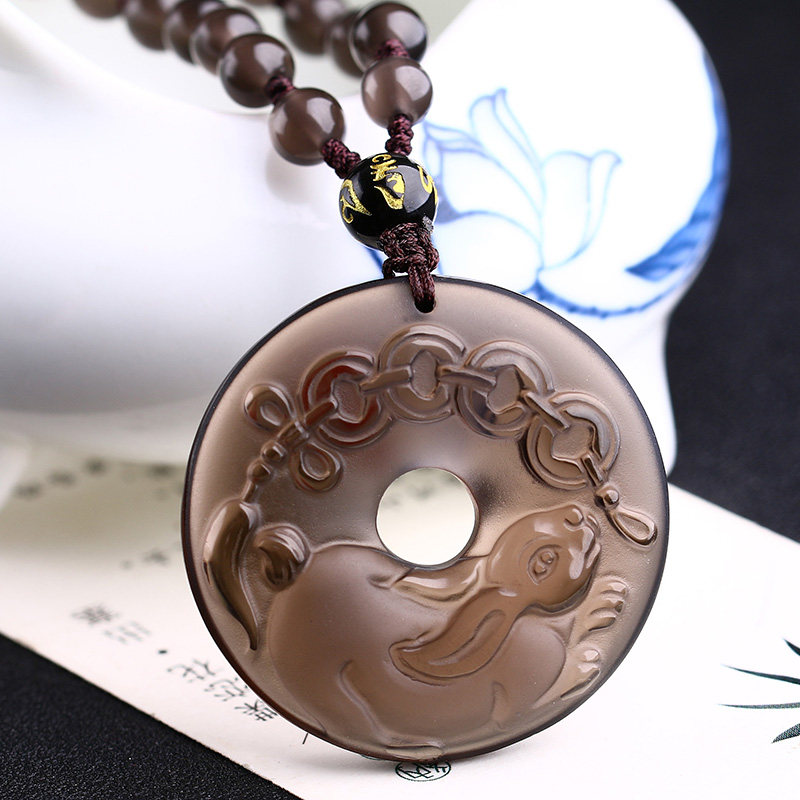 太阳助合黑曜石卯利百赢生肖属兔吊坠吉祥物卯府奇财男女款