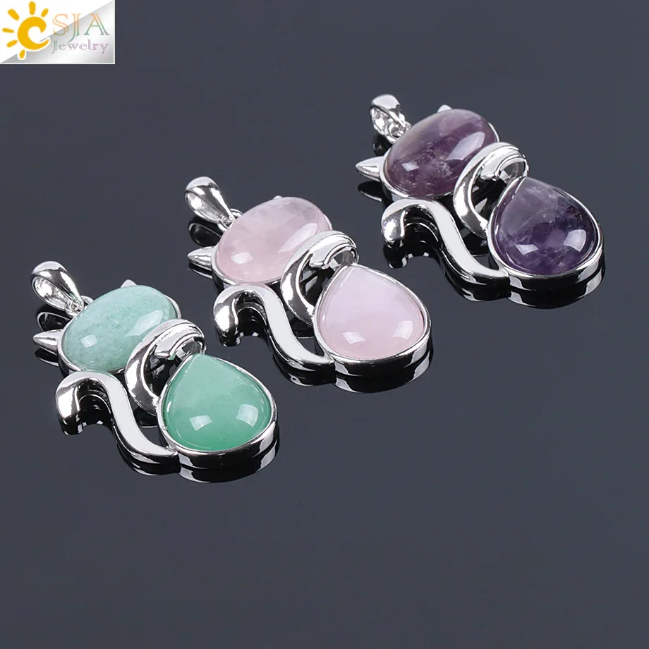 Pendant Feature:Cute Cat Shape + Gemstone Beads + Fashion New Arrival