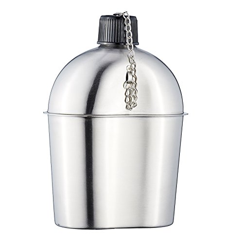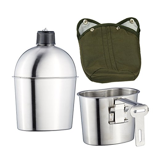 Pinty Military Stainless Steel 1L Canteen with 0.6L Cup G.I. Army Green Nylon Cover