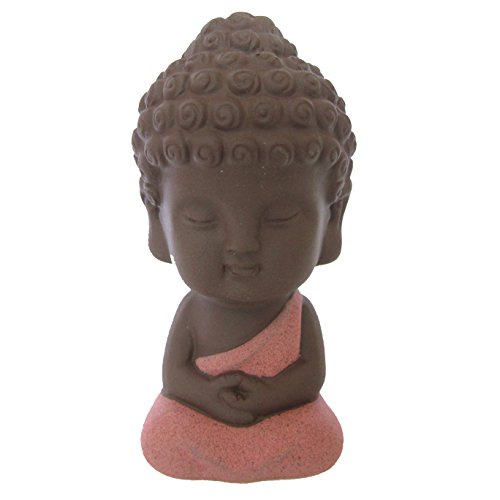 LU2000 Collections Mini Buddha Statue for Desk Meditation Decor Beautiful Cute Monk Child Red Porcelain Made Figurine (Approx.) 4 Inch - Light Red