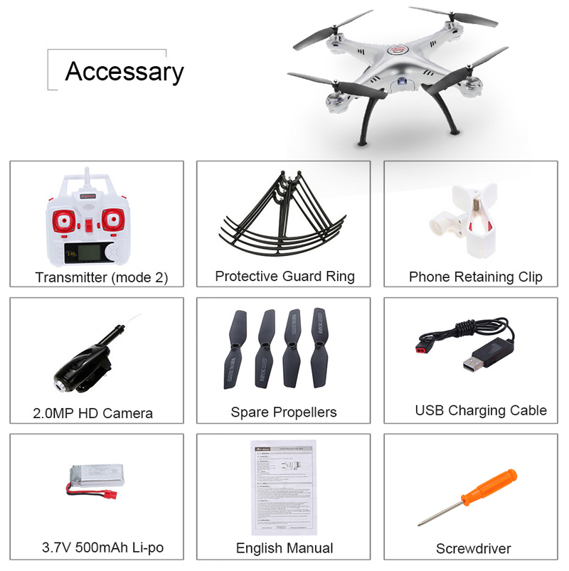 Just like the exquisite outward appearance, durable material and multi-function of SYMA X5HW, you will like it after having a look! The This quadcopter is equipped with WIFI real-time transmission and 2.0MP HD camera that is good for the files of pictures and videos to be directly stored in the mobile so that you can viewing the effects whenever and wherever. The H/L speed switching, headless mode and barometer set high ability makes fly get more easily and you will enjoy a wonderful flying experience. Just come and get it!