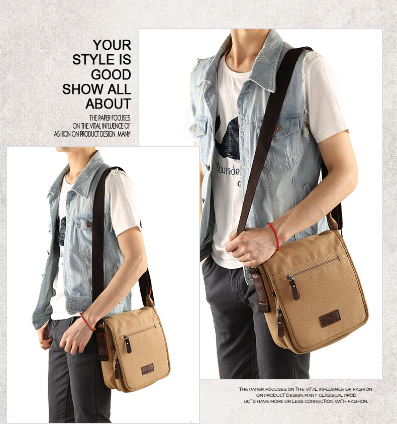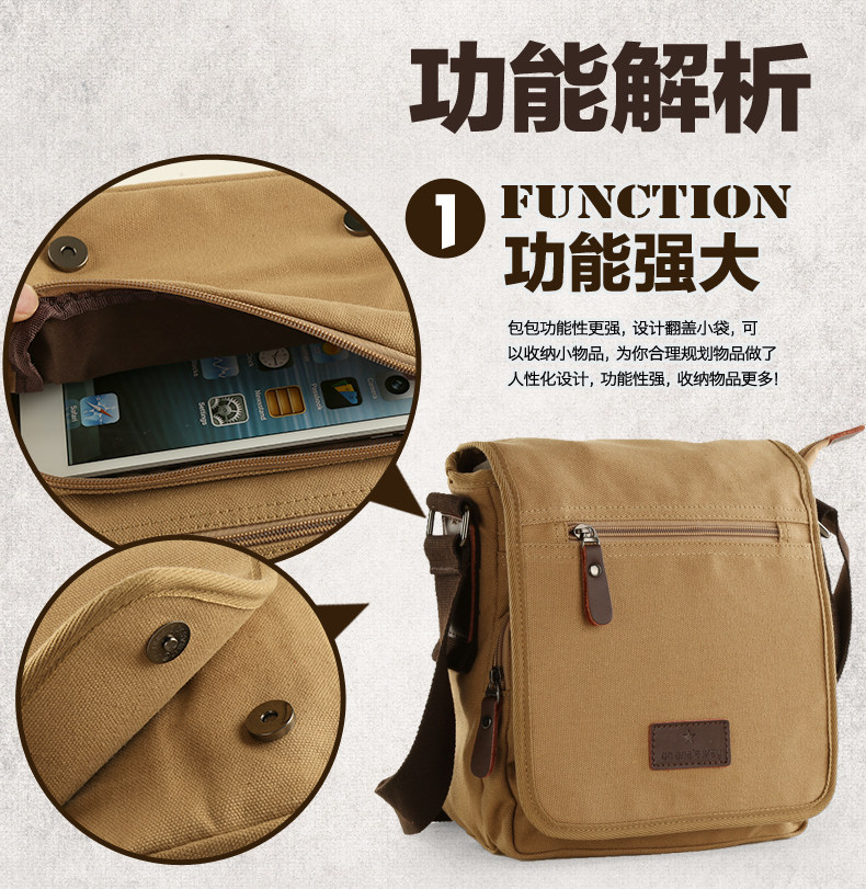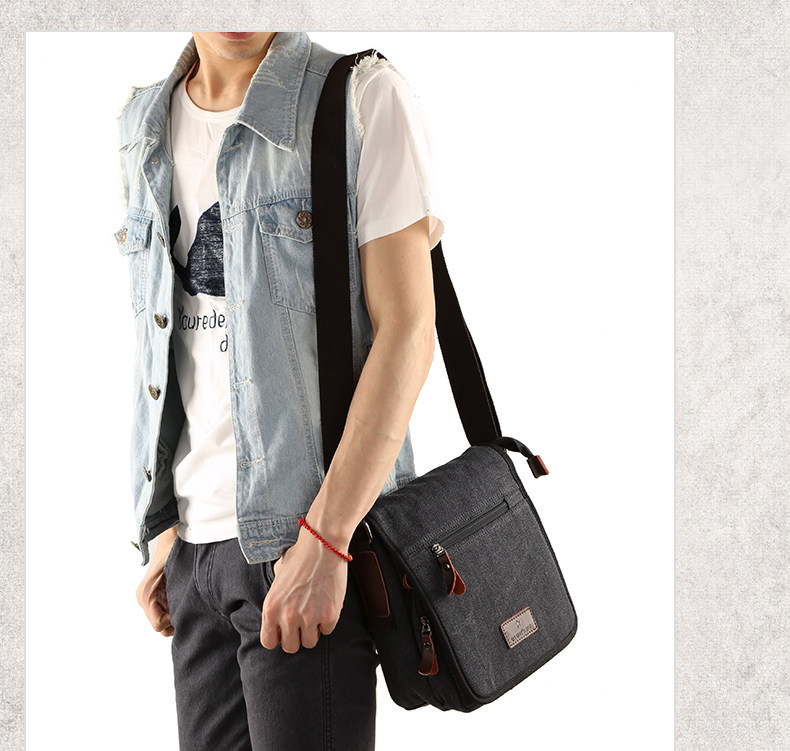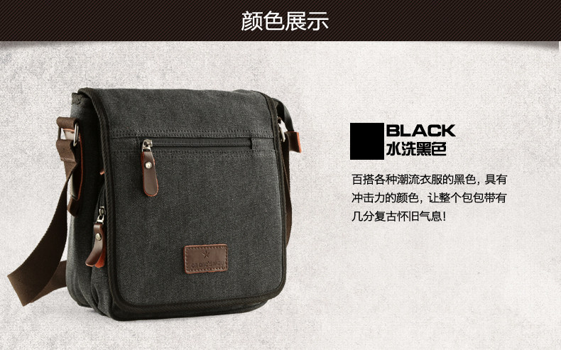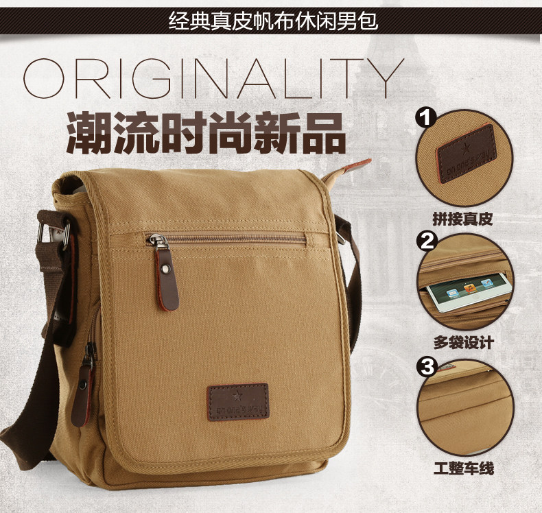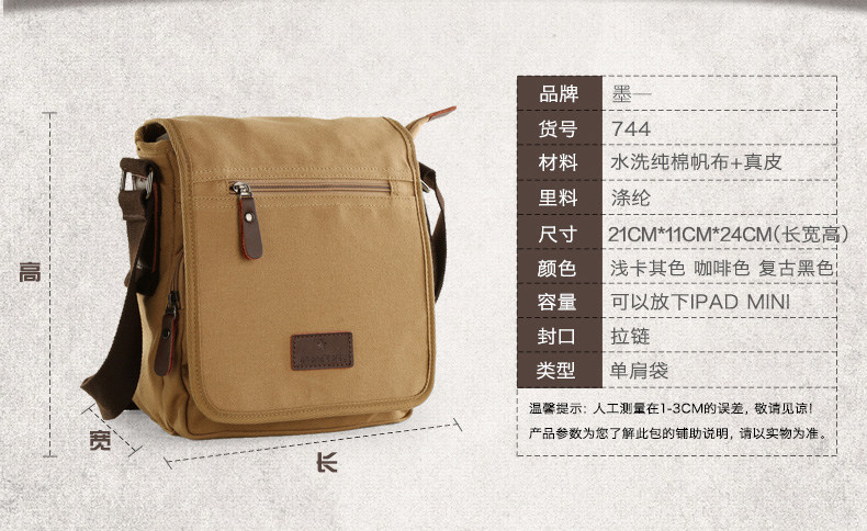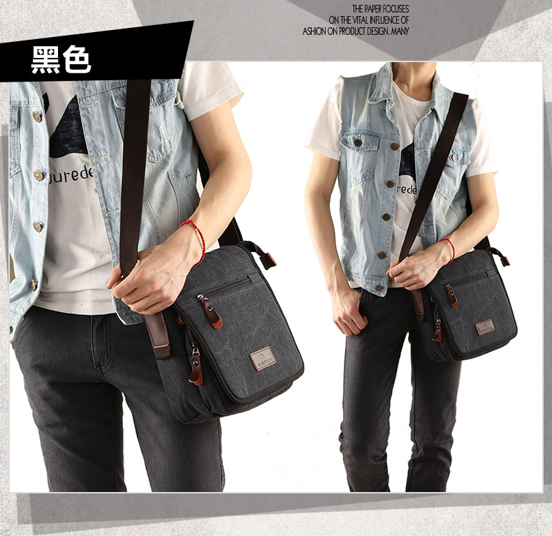 墨一潮流帆布包男士休闲单肩包 户外运动斜挎包男包学生背包小包
