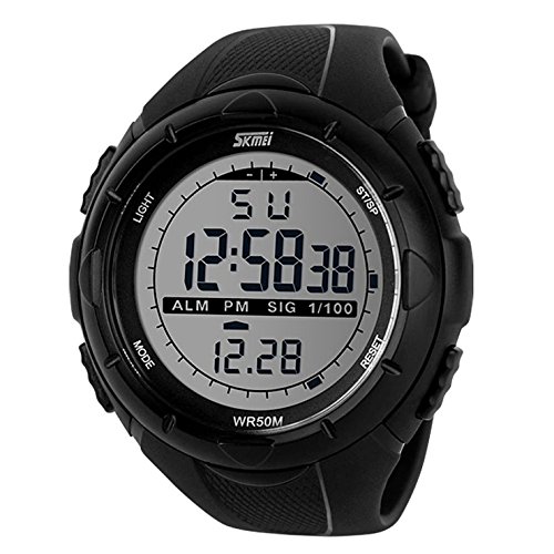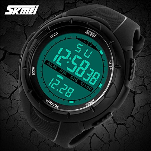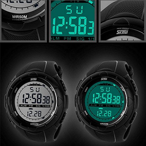 -. Title : Gosasa Men's Military Style Digital LCD Display Waterproof Sports Wrist Watch - Black