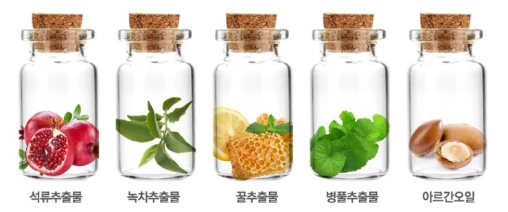 From nature: Pomegranate extract, Green tea Extract, Honey Extract, Centella Extract, argan oil