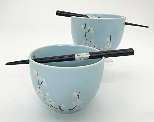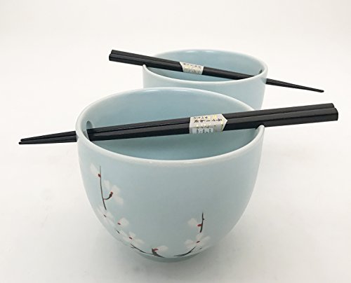 SIZE AND WHAT'S INCLUDED - The beautiful set of bowls measures approximately 5.5 inches diameter and 4 inch tall. It can hold about 35oz. The matching chopsticks are 8 inches long. Set includes 2 bowls and 2 pairs of chopsticks, comes packaged in beautiful gift box