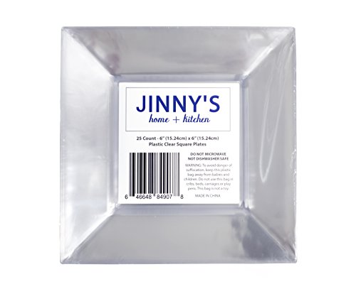 Clear Premium Plastic Disposable 6 Inch Square Cake Dessert Appetizer Party Event Wedding Plates, 25 Count (Pack of 2)