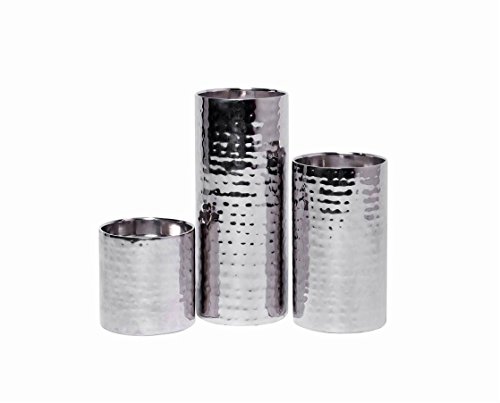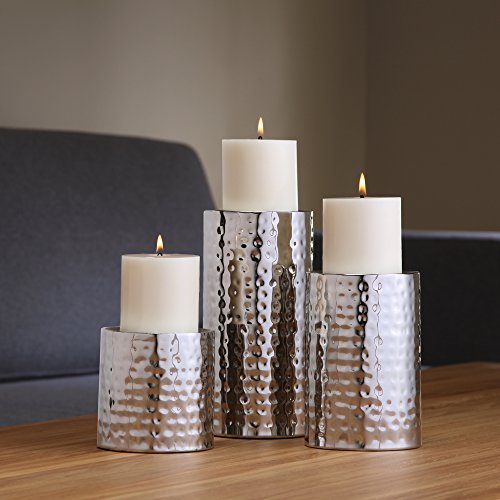 Hosley Pillar Candle Holders SILVER FINISH SET OF 3, 7" 5" 3" High. Metal Ideal GIFT DECOR Wedding, Party, Home, SPA, Aromatherapy, Reiki, Votive, Tea Light, Candle garden Vase/Floral