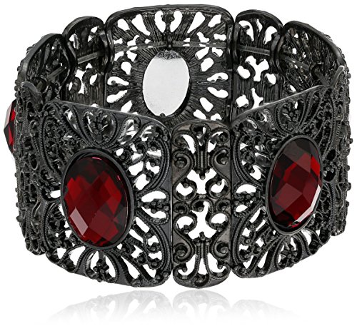 1928 Jewelry Black-Tone Red Wide Filigree Stretch Bracelet