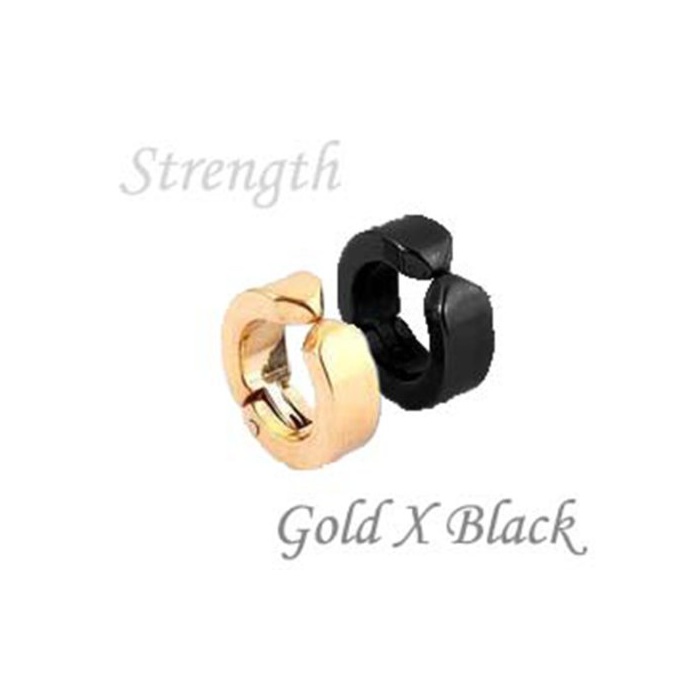 Strength 편성해 선택 스테인레스 심플 귀걸이 2 개세트 쥬 에리 파우치 부착 AmanoSong오리지날3점 세트 (A040) 이어 카프 2개 세트 (블랙&골드)