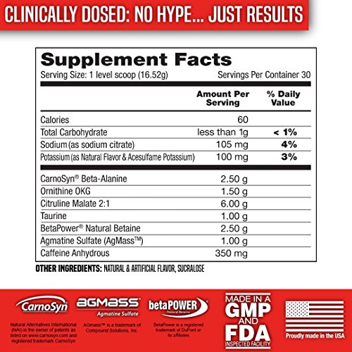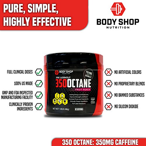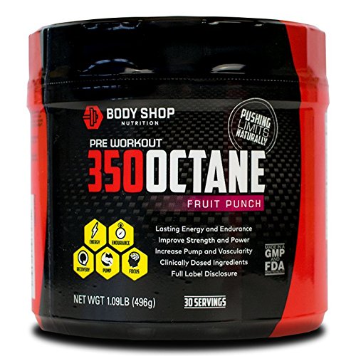 Body Shop Nutrition - 350 Octane Pre-Workout Supplement - Pump / Energy / Endurance Powder for Men and Women - Creatine Free - No Crash...