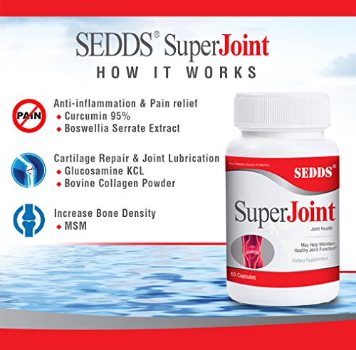 Super Joint features a potent combination of all-natural ingredients scientifically proven to help maintain healthy joint function and relieve joint discomfort & inflammation. Glucosamine, Curcumin, Boswellia Serrate Extract, Bovine collagen and MSM work synergistically to help nourish joints and connective tissue while providing fast-acting joint pain relief. Super Joint features easy to swallow capsules that are made in the USA, NON-GMO and Gluten-Free!