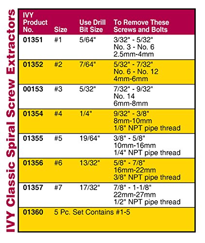 IVY Classic 01356 Chrome Alloy-Steel No. 6 Spiral Screw Extractor, Removes Screws 5/8 - 7/8-Inch, 1/Card