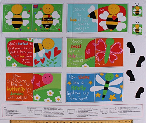 35.25" X 44" Panel Huggable & Loveable "Beecause I Love You" Bee Ladybug Butterfly Firefly Insect Kids Soft Book Cotton Fabric Panel (3360P)