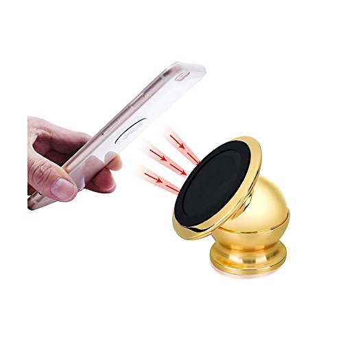 Car Mount,Show Wish 360 Degree Rotatable Sticky Magnetic Mini Mount Smart phone Dock Mobile Phone Holder for iPhone ,Mini Tablets (gold)