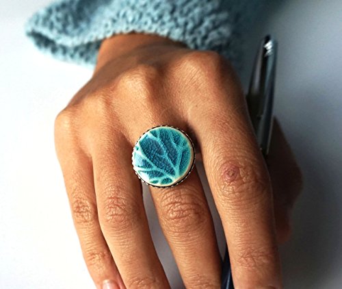 -. Title : Handmade Ceramic Adjustable Blue Ring with Crackle Effect
