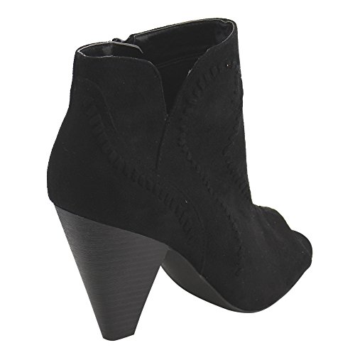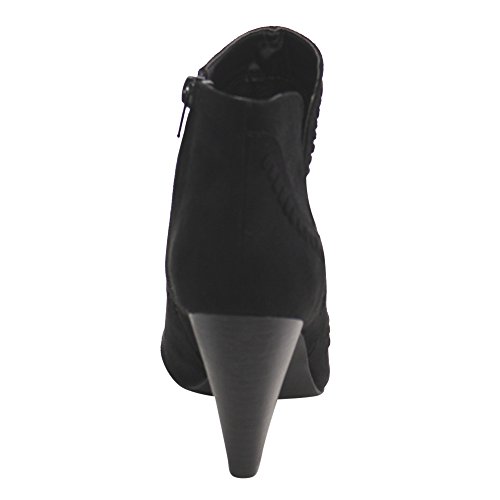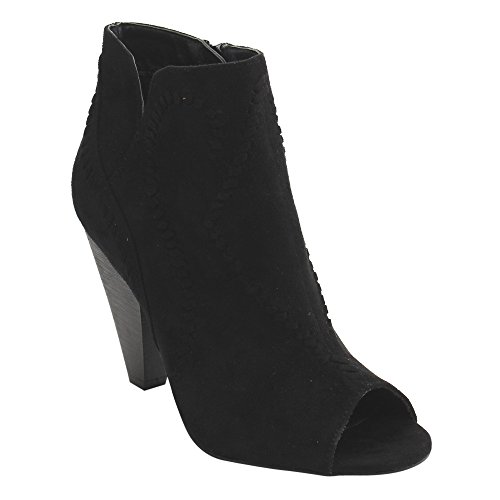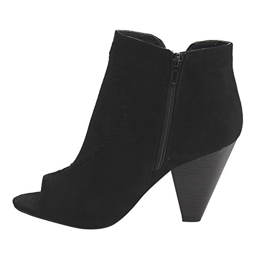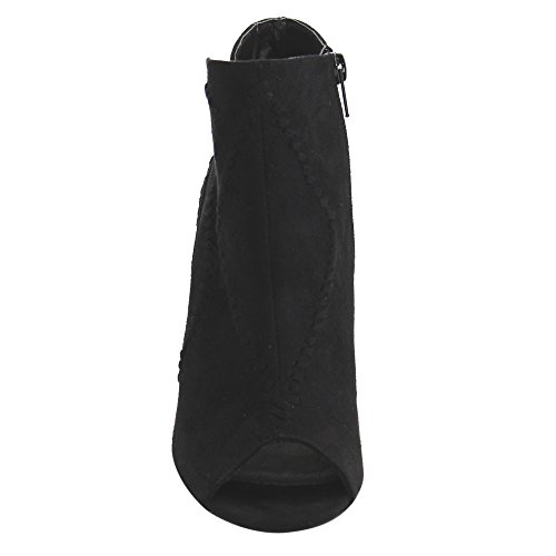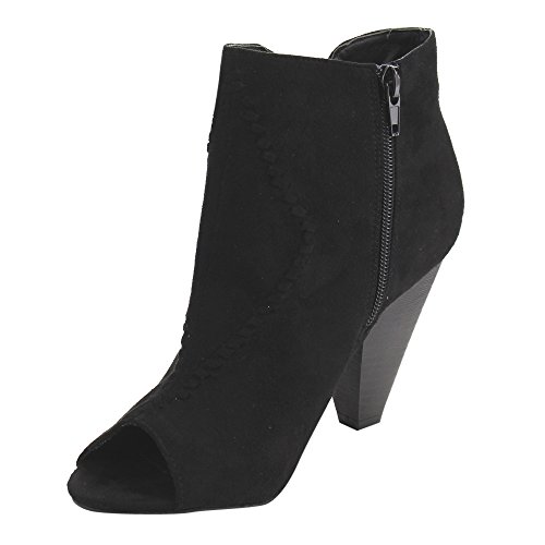Product DescriptionThis style is the perfect touch of fashionable footwear your ensemble needs. Designed with faux suede upper, peep toe silhouette, stacked chunky heel and inside zipper closure for easy on and off.0