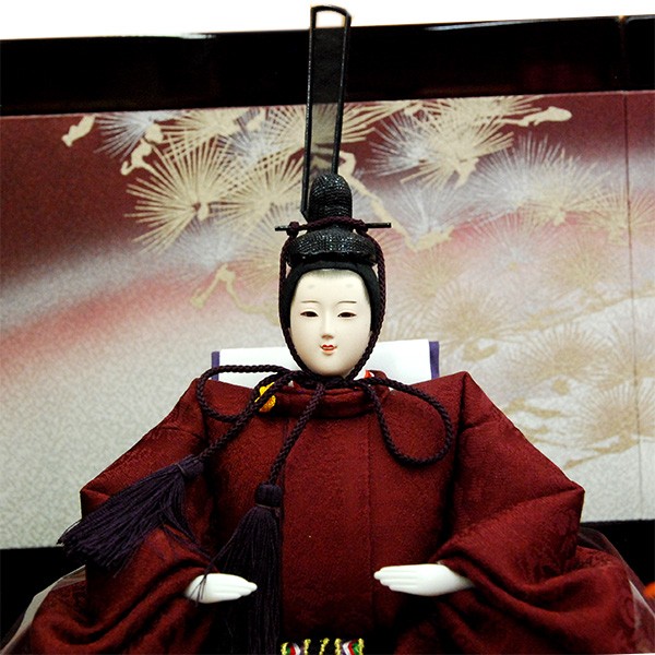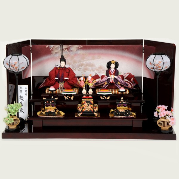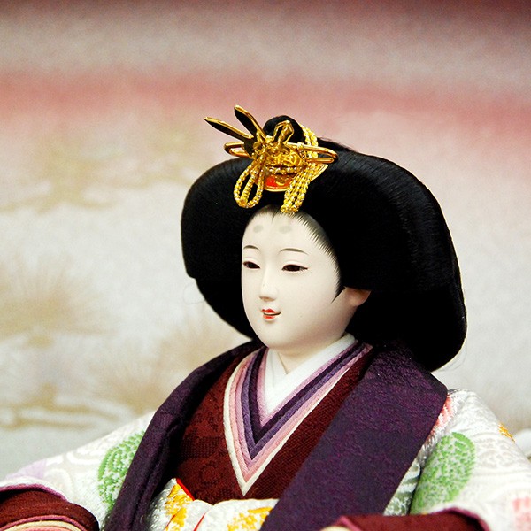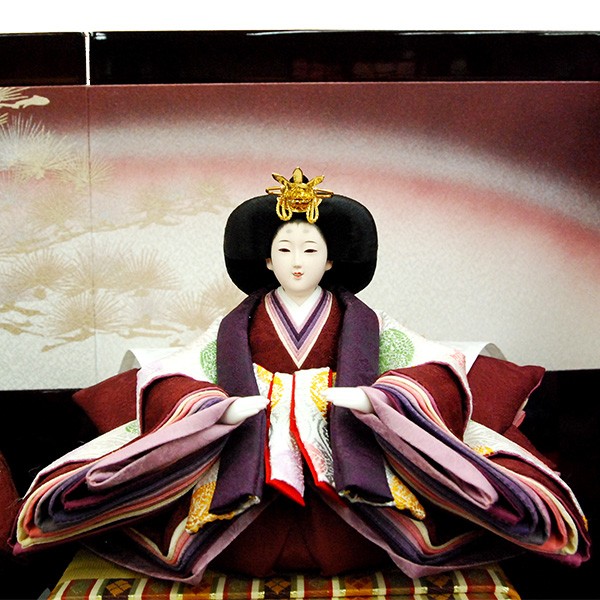 ・台座・屏風等には落ち着いた色目の雛人形セット。