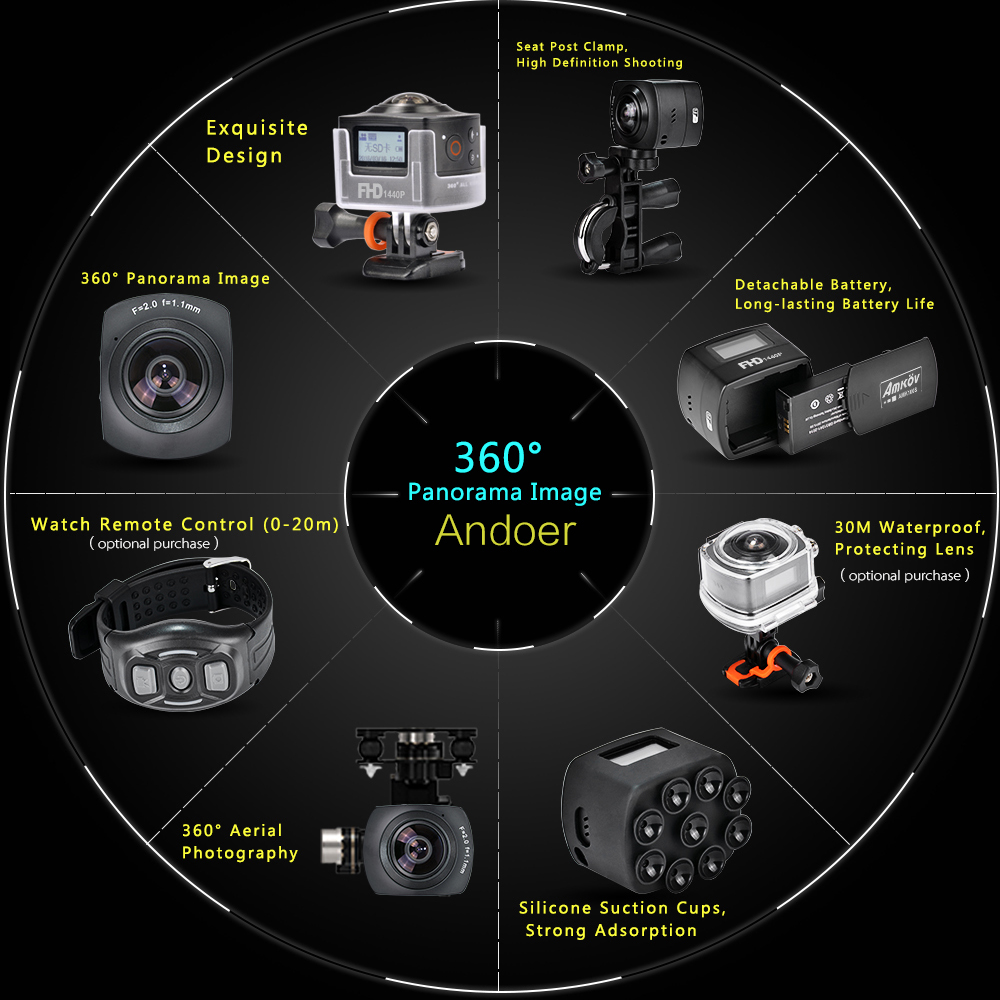 split-screen display, hemisphere display, tile horizontal, Gyroscope and Up-down flip display. Sharing fantastic moment to Youtube, Facebook, Wechat, mailbox and etc.