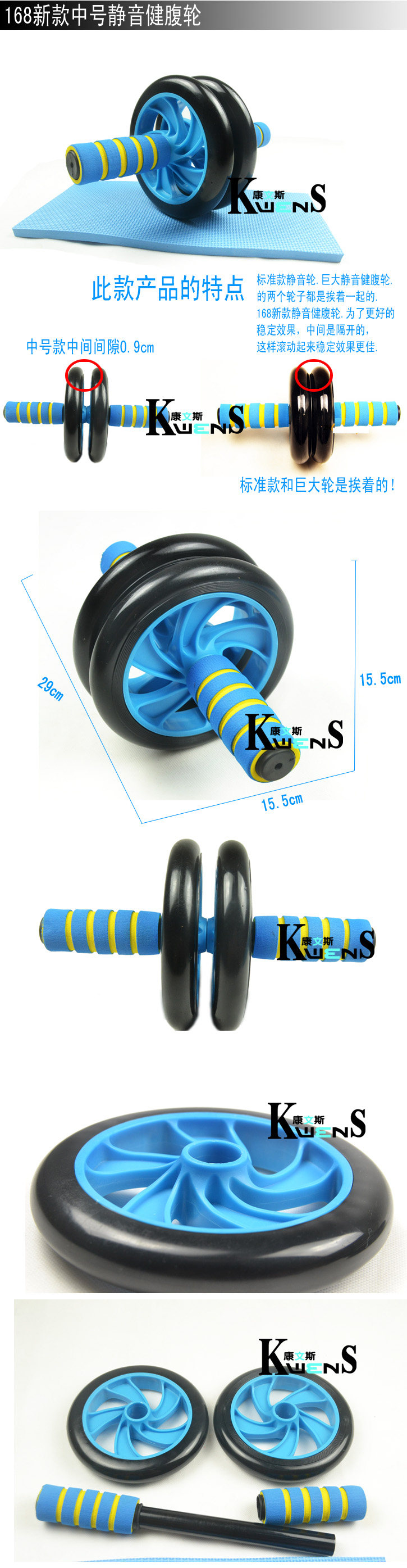 Works your abs and upper body with low impact rolling action
