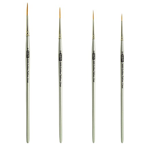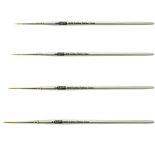 ZEM BRUSH Golden Taklon Multi Media Long Liner Artist Brush Set 20/0, 10/0, 5/0, 0