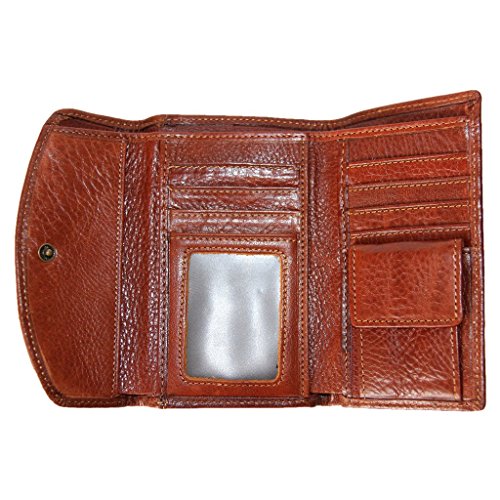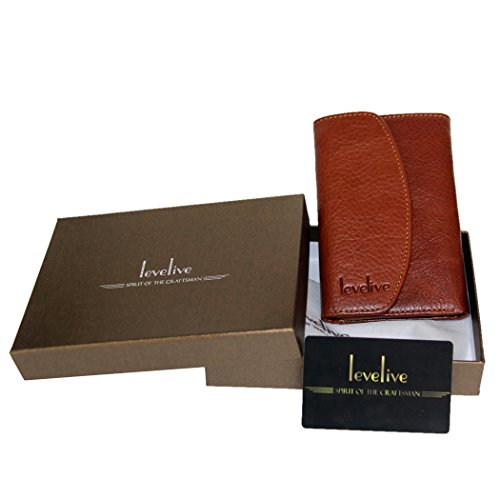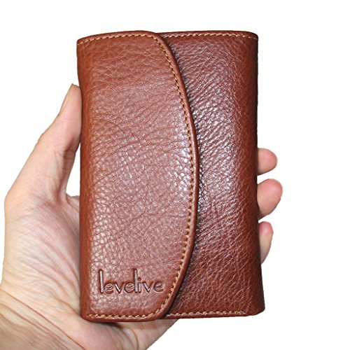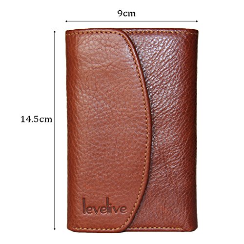 -. Title : Levelive Italian Genuine Cow Leather Stud-snap Mens Trifold Wallet Brown LL2821