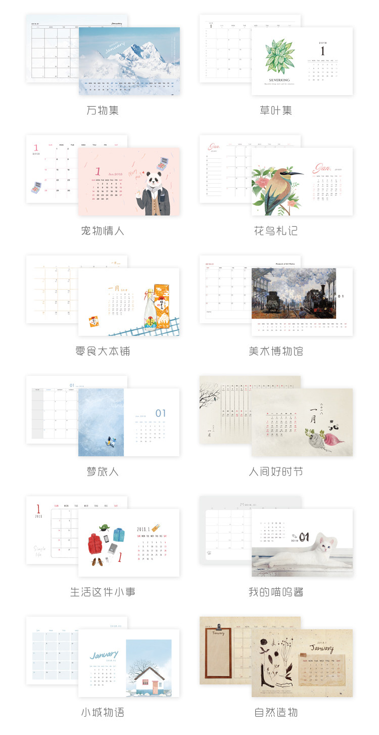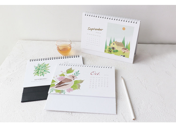 清新系列2018台历 提醒备注日历农历 办公桌面折叠万年历