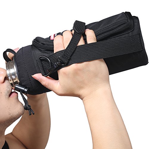 -. Feature : PORTABLE & HANDSFREE: 1 carrying handle + 1 adjustable shoulder strap w/ padding; providing a secure and convenient way to carry your bulky water bottle. Side Handle, makes holding and drinking from the 40oz growler effortlessly with ONE hand. Great for camping, hiking, biking, boating and other outdoor activities / 2 POCKETS: 1 large pocket + 1 small pocket for storage and organization; can fit iPhone 6 Plus, credit cards, keys, changes, flavor packets and other essentials / SOLID PROTECTION: robust nylon sleeve protects your flask from minor scratches and dents / METAL D-RINGS/CLIPS: this flask carrier is made from quality materials that are built to last