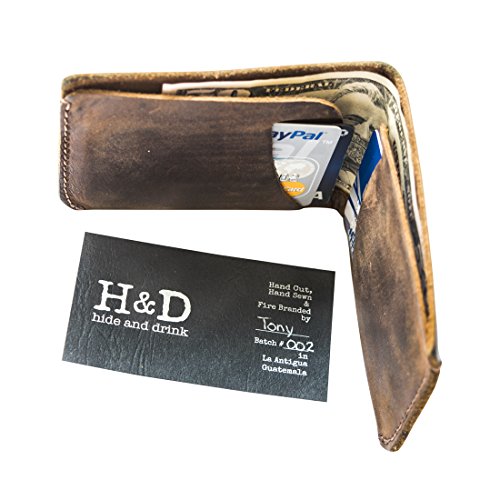 -. Brand : Hide & Drink -. Color : Brown -. Department : mens -. EAN : 0644221067260 -. Feature : Handmade from rustic full grain leather / Combine elegance, comfort and convenience / Allows easier access to your cards and cash / Safe, stylish and slim / Perfect gift for him -. IsAdultProduct : 0 -. ProductGroup : Apparel -. ProductTypeName : LAGE -. Size : Small -. Title : Rustic Leather Slimfold Wallet Handmade by Hide & Drink :: Bourbon Brown -. UPC : 644221067260