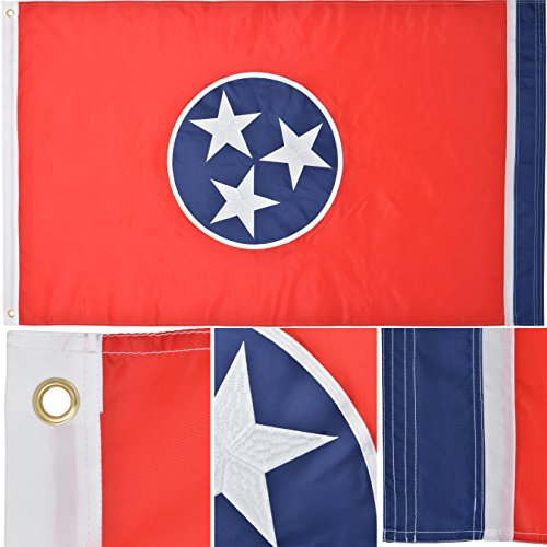Green Grove Products Tennessee Flag 3' x 5' Ft 210D Nylon Premium Outdoor Embroidered Flag by