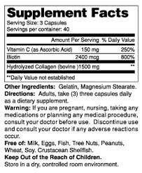 FAST SHIPPING!!! You are bidding : COLLAGEN Hydrolyzed PLUS BIOTIN & VITAMIN C 1500 mg per serving 120 CAPSULES Promotes healthy hair, skin & nails. Essential for cartilage formation & joint repair